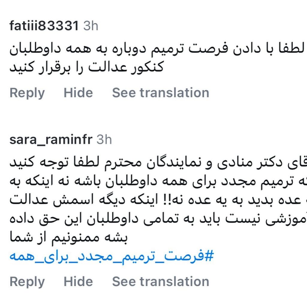 به واسطه اهمیت بالای نگرانیهای شما در خصوص مسئله ترمیم معدل، ضمن مطالعه و توجه به تمامی کامنتهای شما، تمایل دارم به اطلاعتان برسانم که این دغدغه مهم نه تنها دغدغه شخصی من، بلکه موضوعی است که تمامی نمایندگان شما در مجلس شورای اسلامی، به ویژه اعضای محترم کمیسیون آموزش، تحقیقات و فناوری مجلس نیز به آن اهمیت ویژه داده و پیگیر رفع این دغدغهاند.